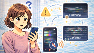 画面・音・通知画面表示が「一瞬だけ」乱れる原因とは?|常時チラつき・フリッカーとの違いと確認ポイント スマホの画面が一瞬だけ乱れる原因を解説。常にチラつくフリッカーとの違いや、故障かどうかを見分けるチェックポイント、確認方法をわかりやすく紹介します。 2025.12.22画面・音・通知