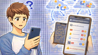 画面・音・通知通知が「まとめて表示」されるせいでリアルタイムに出ない原因とは?|通知グループ化機能の設定を見直す方法 通知は届いているのにリアルタイムで表示されず、後からまとめて出る原因を解説。通知のグループ化・要約表示・重要度設定など、即時表示に戻すための確認ポイントをわかりやすく紹介します。 2025.12.24画面・音・通知